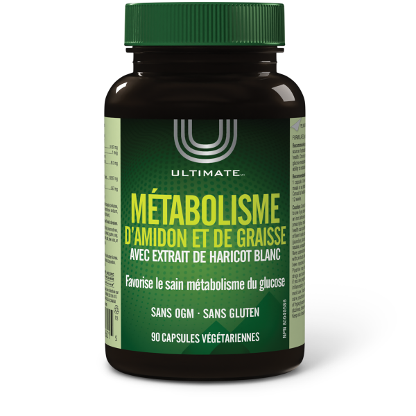 Ultimate Starch & Fat Metabolizer contient de l’extrait de haricot blanc Phase 2® Carb Controller™, de l’extrait de thé vert, du chrome, de l’extrait de Gymnema et de l’extrait de poivre noir BioPerine® pour soutenir le métabolisme sain du glucose et des graisses. Il peut être utilisé dans le cadre d’un régime alimentaire sain pour réduire l’impact des repas riches en glucides et en graisses.